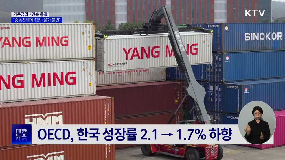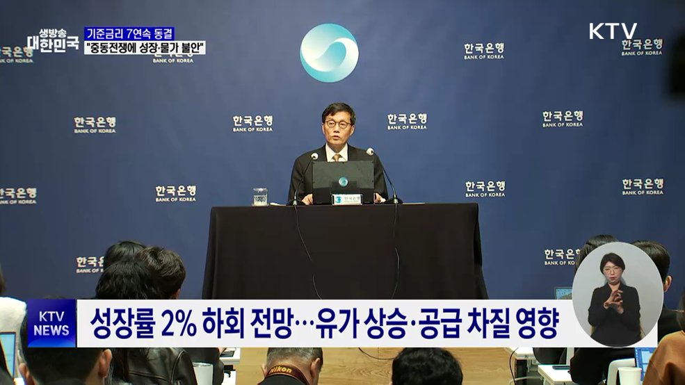 기준금리 7연속 동결···"중동전쟁에 성장·물가 불안"