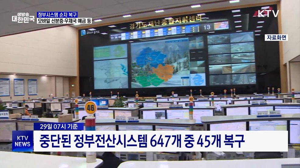 화재로 중단된 647개 정부시스템 중 45개 복구