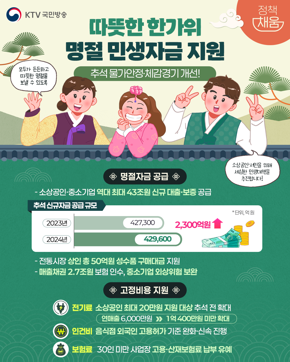 정부는 추석 전후 자금 사정이 어려운 소상공인과 중소기업에 명절자금 43조원을 공급합니다.