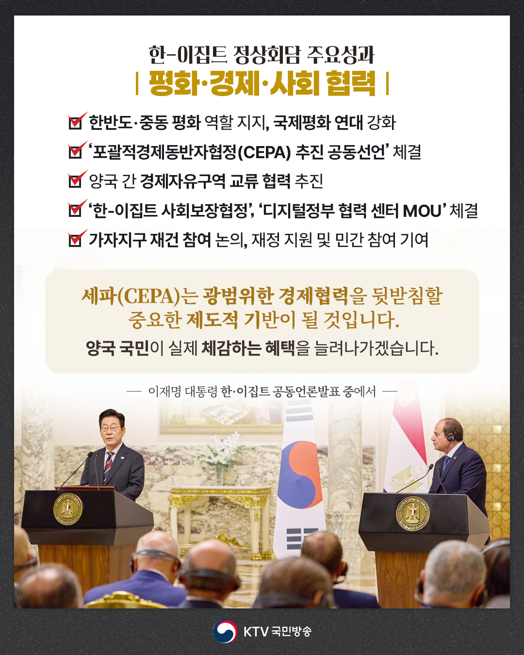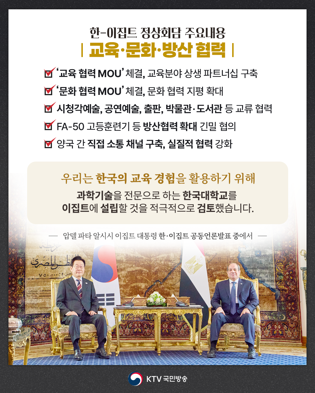 - ‘한-이집트 사회보장협정’ 타결, ‘디지털정부 협력 센터 설립·운영 MOU’ 체결