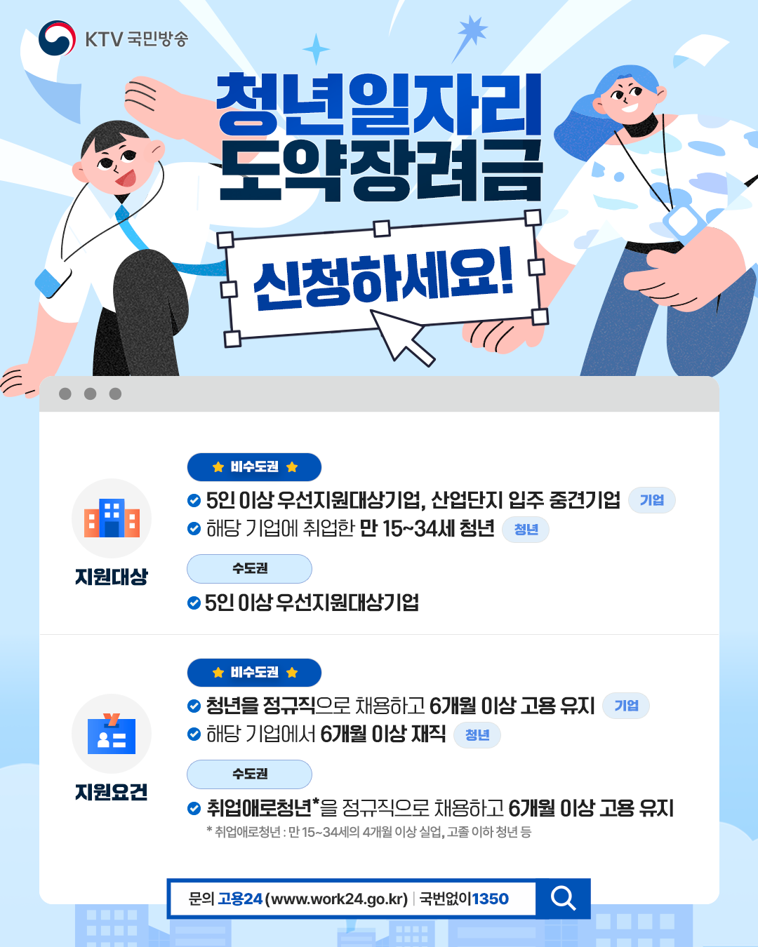 고용24홈페이지에서 청년일자리도약장려금 검색국번없이 1350