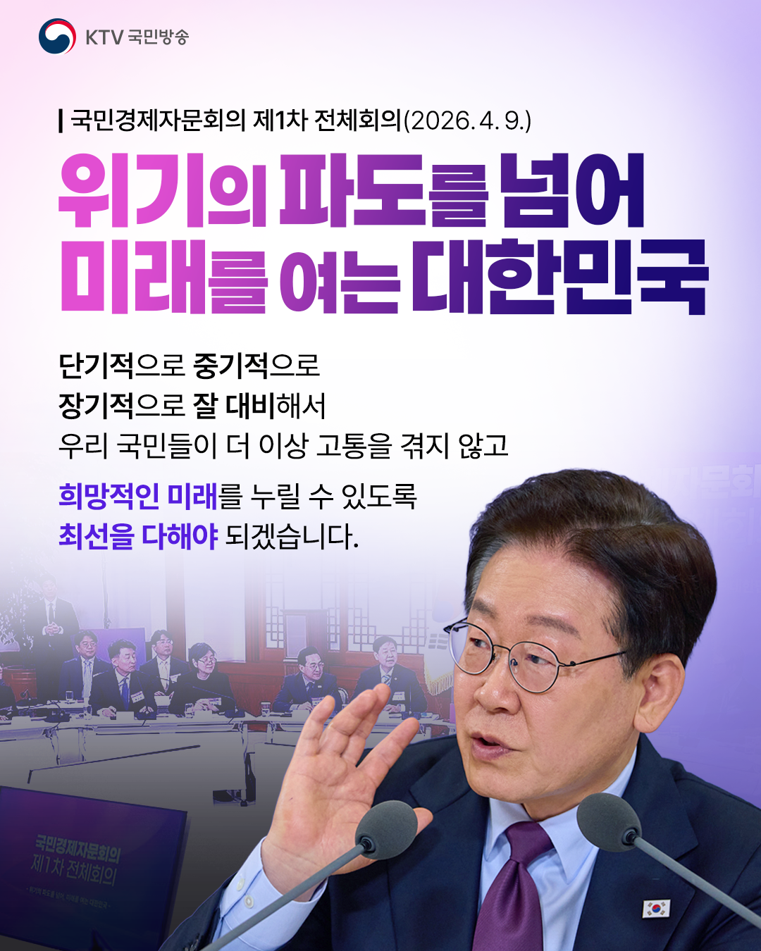이재명 대통령은 4월 9일, 청와대 본관 충무실에서 국민경제자문회의 제1차 전체회의를 주재했습니다.