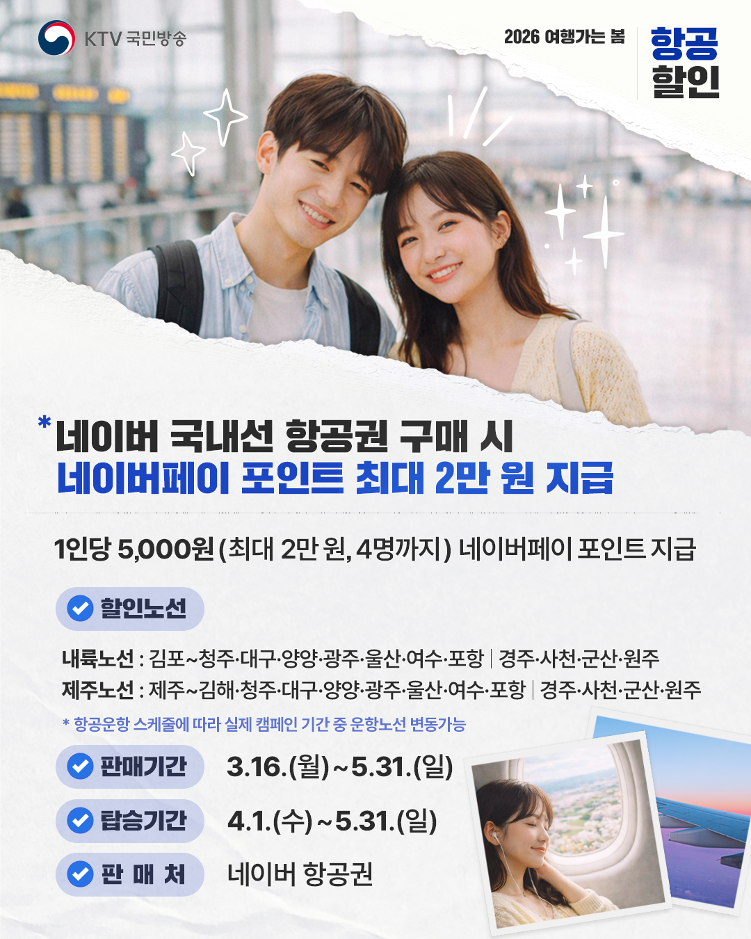 - 국내선 항공권 구매 시 네이버페이 포인트 최대 2만 원 지급