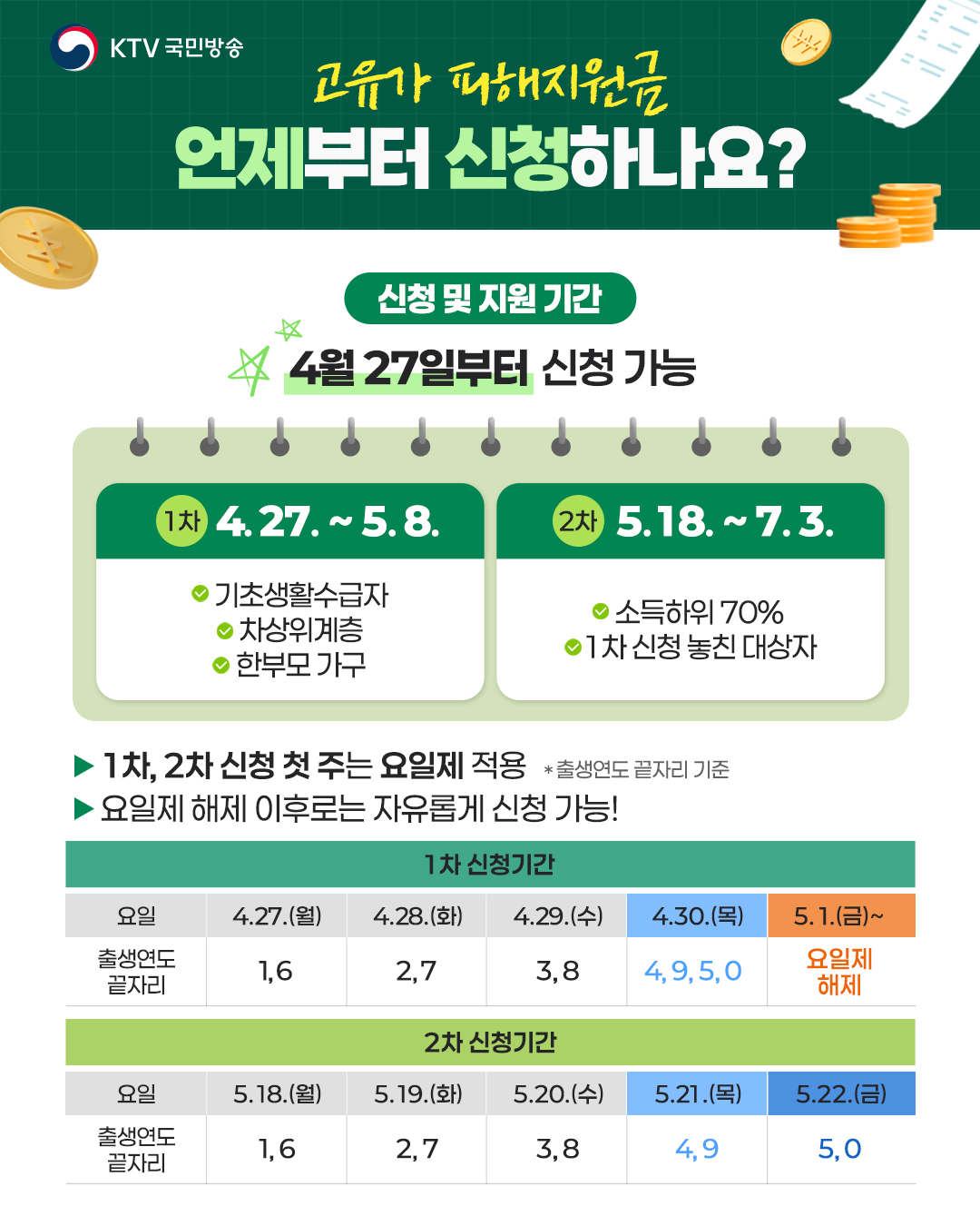 - 대상 여부, 지급 금액, 신청 일정 등을